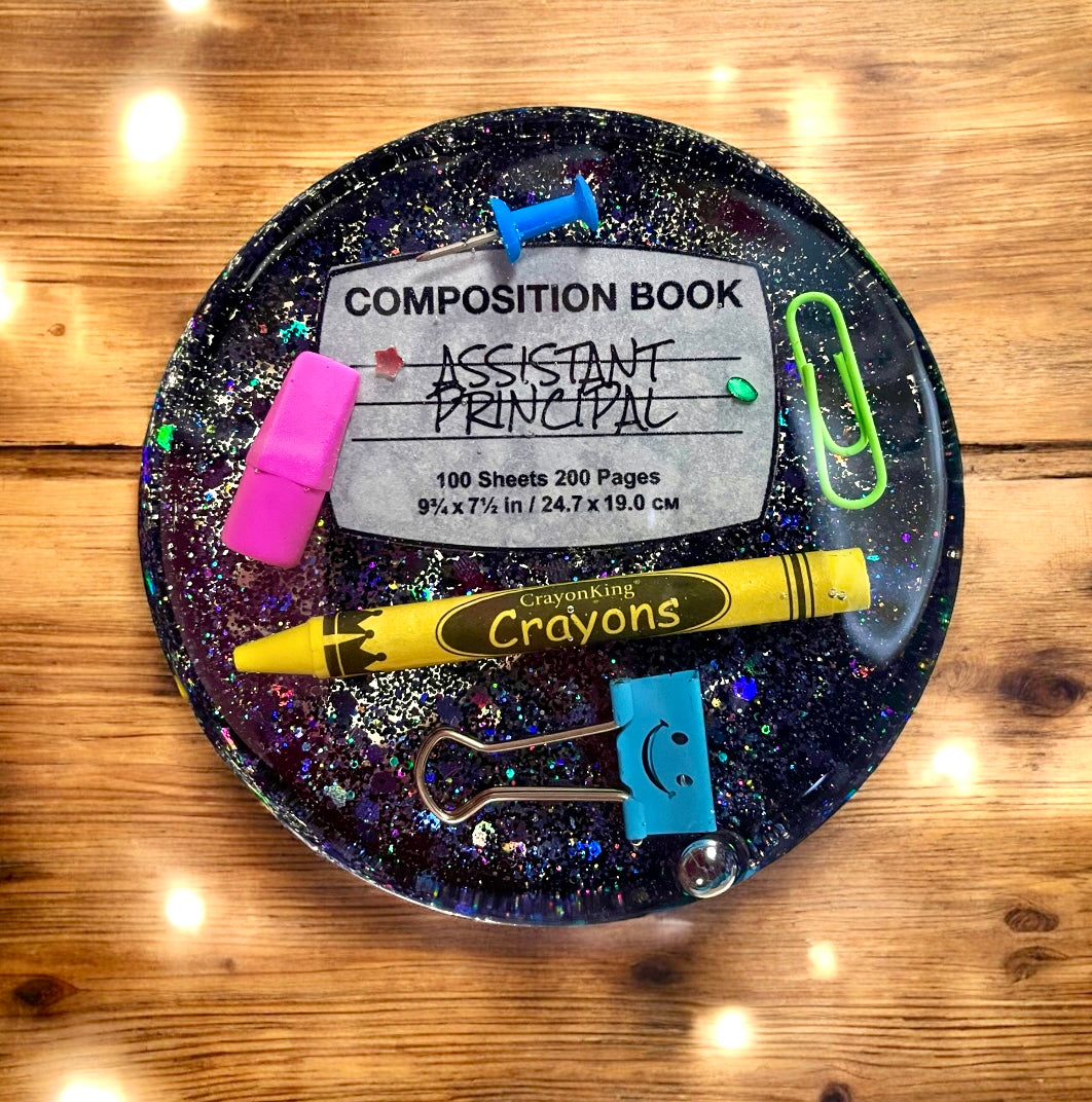 Designed with care, this Assistant Principal coaster and paperweight has a small imperfection; a small resin bubble on the bottom
